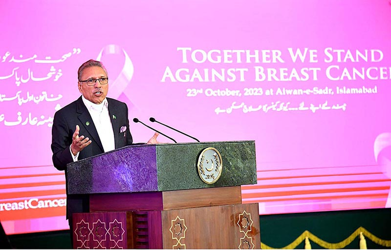 World Health Organization (WHO) Country Representative for Pakistan Dr Palitha Gunarathna Mahipala while addressing the ceremony appreciated President Alvi and the first lady for raising awareness about breast cancer in the country.