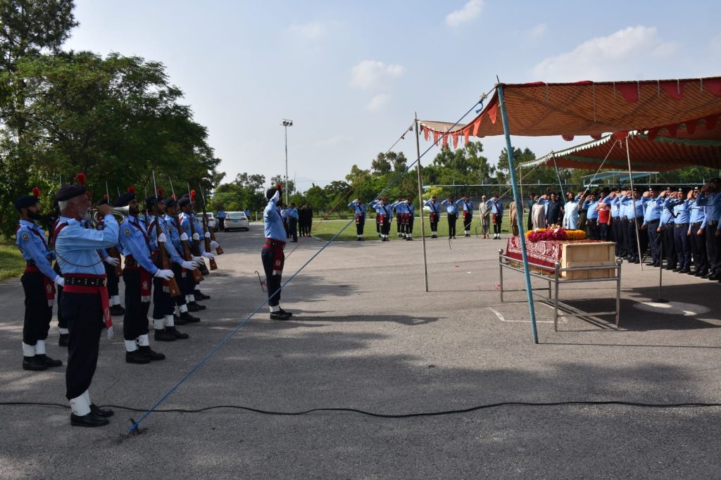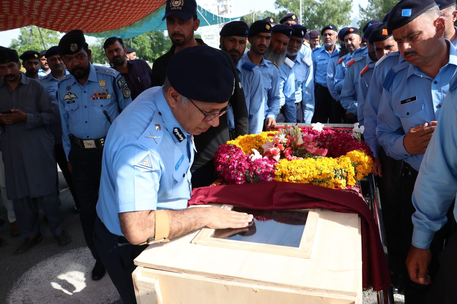 The fallen officer’s funeral prayers were offered at the Police Lines Headquarters in a solemn ceremony attended by a significant number of senior police officers, including ICCPO Dr. Akbar Nasir Khan, along with a multitude of young officers.
