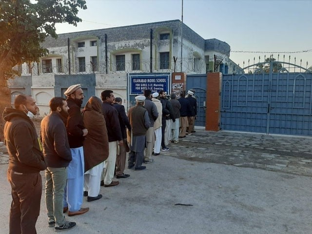 Voters arrived for polling in Saidpur village union council (UC) and queued in protest as the gates for the polling station remained closed and staff was absent.