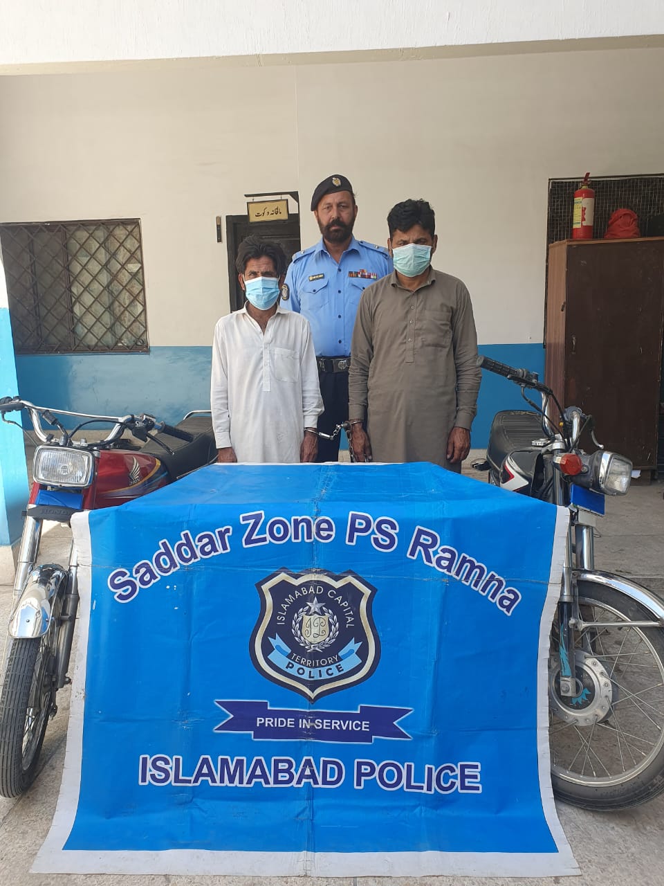 Islamabad, May 20, 2023: In a significant move to curb motorcycle theft, the Ramna Police Station has launched a successful crackdown against a notorious organized group involved in multiple incidents of motorcycle thefts. As a result, two key members of the gang were apprehended, leading to the recovery of two stolen motorcycles.