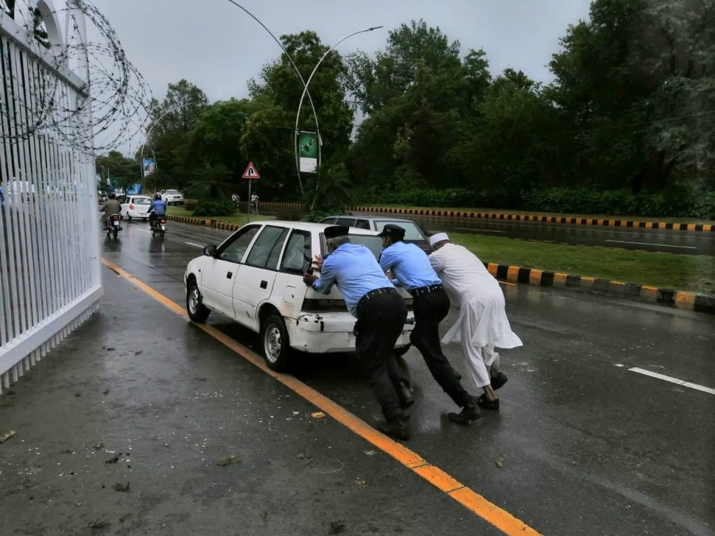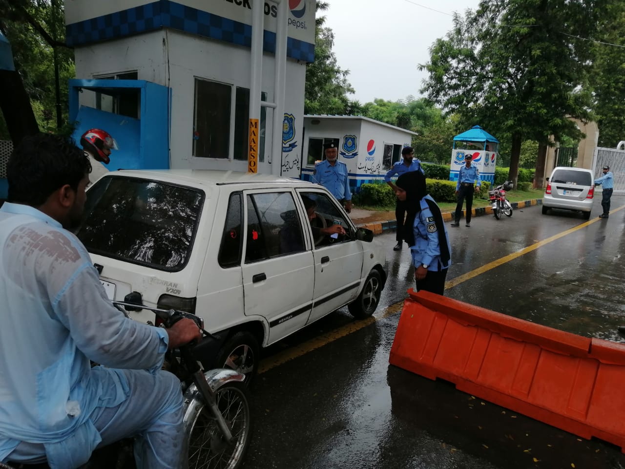 Islamabad, August 17: Amidst heavy rainfall, the Islamabad Capital police is actively involved in checking procedures alongside providing assistance to the citizens at various checkpoints. Even in the face of intense downpour, female constables are fulfilling their duties shoulder to shoulder with their male counterparts, showcasing commendable dedication.