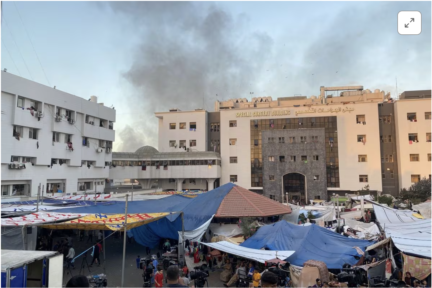 Israeli Defence Forces (IDF) are targeting the hospital repeatedly and attack drones are hovering at a low altitude over the area.