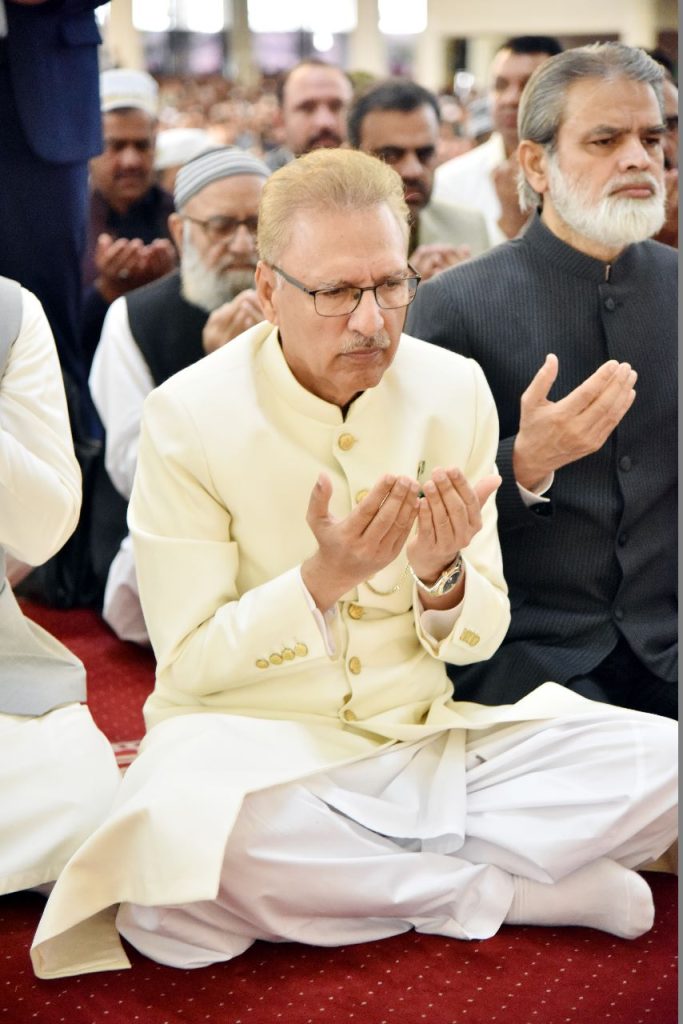 ISLAMABAD, Apr 22 (APP): President Dr Arif Alvi on Saturday offered the prayer of Eid-ul-Fitr at Faisal Mosque here and prayed for peace, progress and prosperity of the country.