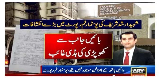 PIMS hospital sources told ARY News that the post-mortem report of Shaheed Arshad Sharif has been handed over to his family. This report has been received by a close relative of the slain journalist.