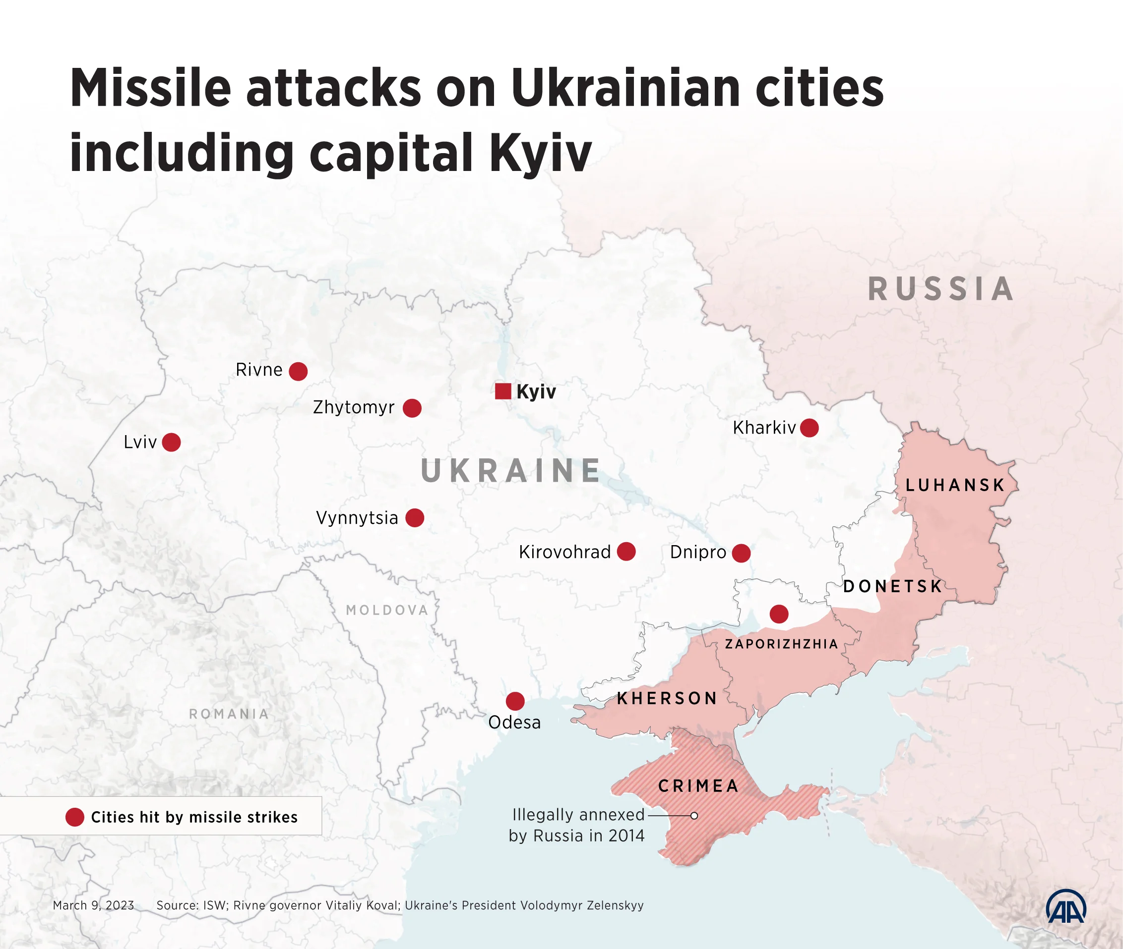 Officials in the southern port city of Odesa, Lviv in western Ukraine and Kharkiv in northeastern Ukraine also reported drone and missile strikes overnight. Elsewhere, in the Dnipro area, a regional official said there was “serious destruction” as a result of the shelling with “energy infrastructure and industrial enterprises” damaged. A number of fatalities were reported in Lviv and Dnipro.