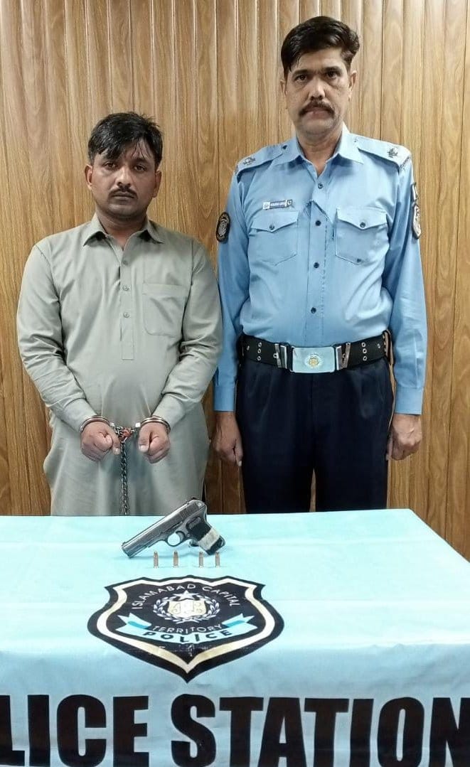 Islamabad, May, 27: The Shahzad Town Police Team has successfully apprehended a suspect found in possession of an illegal weapon. During the operation, the police seized the weapon along with a significant quantity of ammunition.