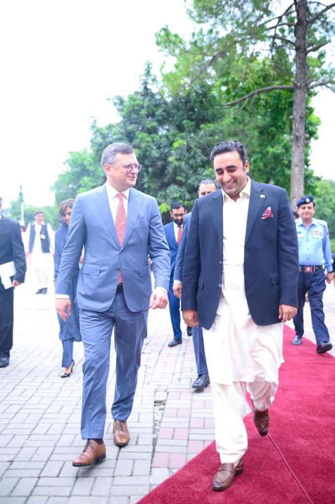 Foreign Minister Bilawal Bhutto Zardari received his Ukrainian counterpart on his arrival at the Ministry of Foreign Affairs.