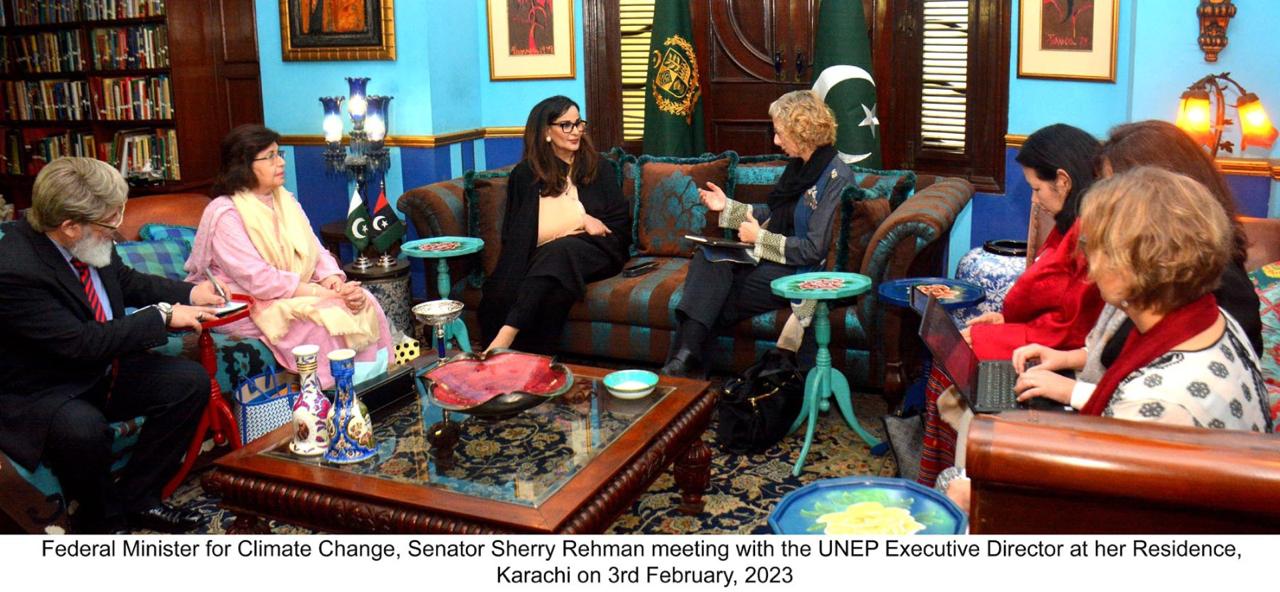 KARACHI, Feb 03 :Under-Secretary-General of the United Nations and Executive Director of United Nations Environment Programme (UNEP), Inger Andersen on Friday led a delegation to meet Federal Minister for Climate Change, Senator Sherry Rehman and appreciated her role in ecosystem restoration.