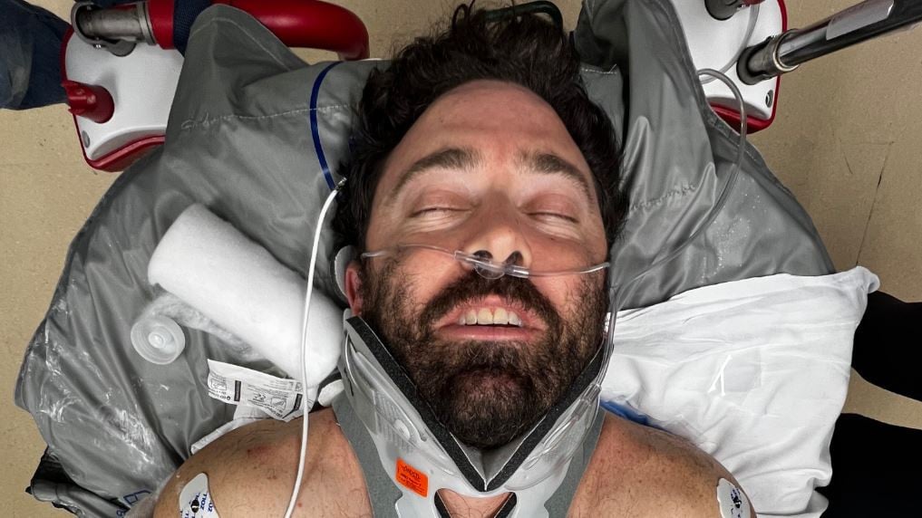 He is currently undergoing treatment for a fractured neck, broken back, and other injuries.